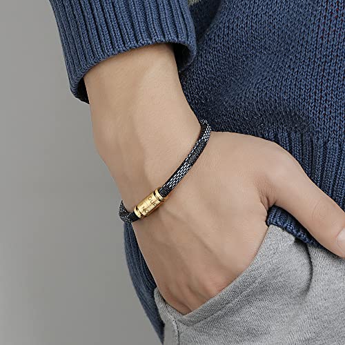 SHOWDAY - سوار جلد مضفر للرجال من شو داي مع مشبك مغناطيسي من الستانلس ستيل - سوار معصم جلد من الالياف الفاخرة، مجوهرات انيقة ومتينة للرجال
