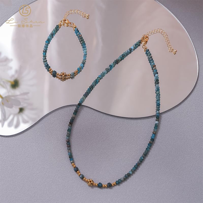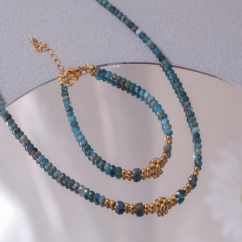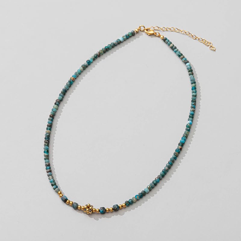 SHOWDAY - قلادة شوكر من الذهب الفيروزي من شو داي، 14 قلادة انيقة بوهو خرز وسوار من حجر الميلاد للنساء، مجوهرات يدوية الصنع، سلسلة من حجر الفيروز الطبيعي، سوار قلادة من الحجر الطبيعي