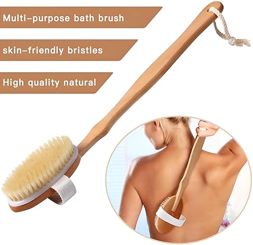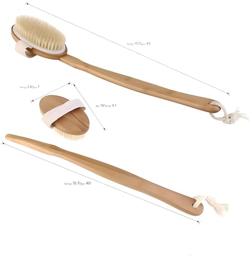 - مقبض خشبي طويل قابل للفصل يضمن سهولة الوصول لتنظيف الظهر بالكامل مع قبضة مريحة.
