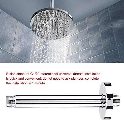 ROBTLE - حامل ذراع الدش في السقف، ذراع دش مطري دائري مع شفة نحاسية مثبتة في السقف لراس الدش، كروم قياسي US 1/2 بوصة ان بي تي (20 سم/7.9 بوصة)