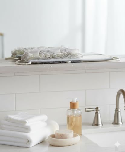 - ما تحصل عليه وتعتني به - منشفة غسيل خلفية واحدة على الوجهين؛ اشطفها بعد الاستخدام وعلقها لتجف للحفاظ على نظافتها وجاهزة للاستحمام التالي