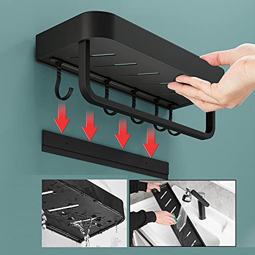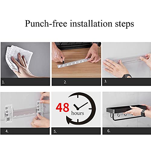 FQYEP - منظم دش بدون ثقب ورف حمام ذاتي اللصق يثبت على الحائط مصنوع من الألومنيوم للمطبخ والحمام، أسود، مقاس A1، مقاس 50 سم