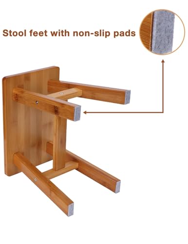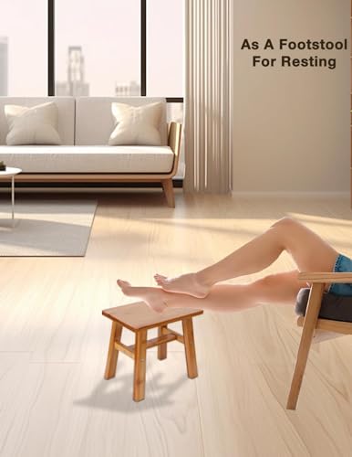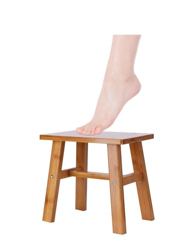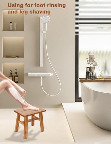 ZLXHDL - كرسي دش، مقعد استحمام خشبي من الخيزران مع مسند قدم قوي للاستخدام الخارجي لغرفة المعيشة والحمام وغرفة النوم (مقعد صغير مربع من الخيزران)