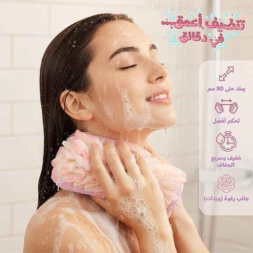 - تصل إلى ظهرك بسهولة: منشفة طويلة للغاية 80 سم مع حزام طويل تساعدك على تنظيف المناطق التي يصعب الوصول إليها مثل الظهر والكتفين دون التواء أو إجهاد - رائعة للاستحمام اليومي.