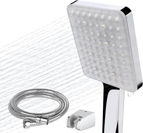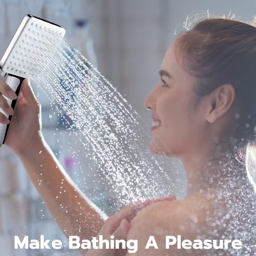 - [رأس دش قوي] يستخدم رأس دش ضغط الهواء لزيادة ضغط المياه في الدش، مما يسمح لك بالاستمتاع الكامل بمتعة الاستحمام. سطح رأس الدش المربع مطلي بالكهرباء، وهو سهل التنظيف وأكثر مقاومة للتآكل ودرجة الحرارة العالية. التوصيل بين الدش والخرطوم مقاوم للاهتراء وأكثر متانة.
