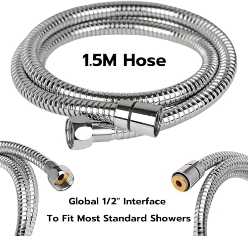Generic - رأس الدش وخرطوم، 6 اوضاع رش قوية للدش مع خرطوم 1.5 متر وحامل، مجموعة رأس دش المطر وخرطوم لحنفيات حوض الاستحمام