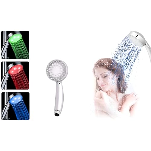 Generic - رأس دش مع إضاءة LED - جودة مضمونة - مصمم بأضواء تتغير ألوانها بناءً على درجة حرارة الماء ومستشعر داخلي لتجربة استحمام آمنة وفاخرة (باللون الموضح, 1 راس دش)