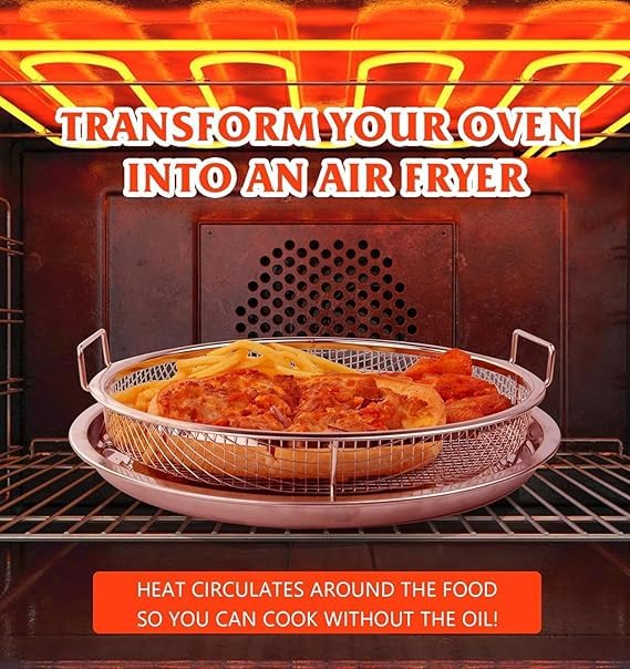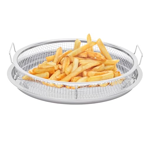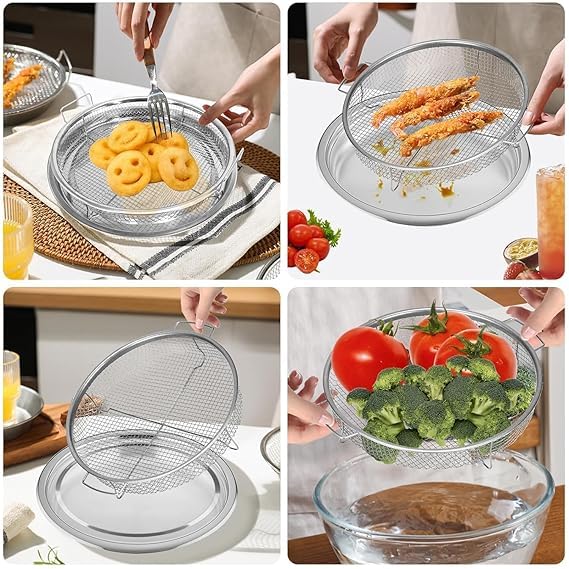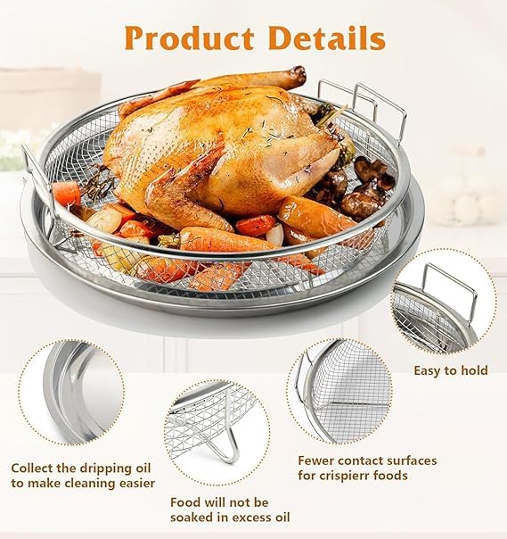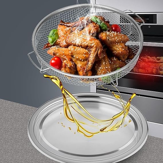 SHREESAMP - سلة مقلاة هوائية دائرية من الستانلس ستيل مكونة من قطعتين من شريسامب لشواية الفرن ورقائق الطبخ غير اللاصقة وعاء الدجاج المقلي صينية صينية سلة مع مقابض