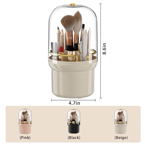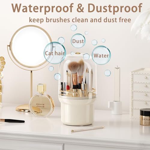 - 【تصميم غطاء مقاوم للغبار】 يحتوي حامل فرش المكياج على غطاء شفاف مقاوم للغبار لمنع الغبار والماء من السقوط على الفرشاة. تأكد من بقاء فرش المكياج صحية والتخلص من شعر القطط. والغطاء طويل بما فيه الكفاية بحيث يمكنك وضع الفرش ذات المقبض الطويل بالداخل.