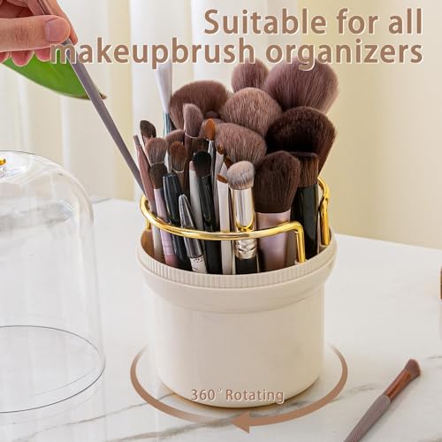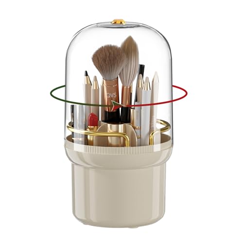 shuang qing - منظم حامل فرش المكياج مع غطاء تخزين دوار 360 درجة لفرش من شوانج تشينغ مناسب لأقلام الماكياج أو تنظيم محدد العيون أبيض لؤلؤي