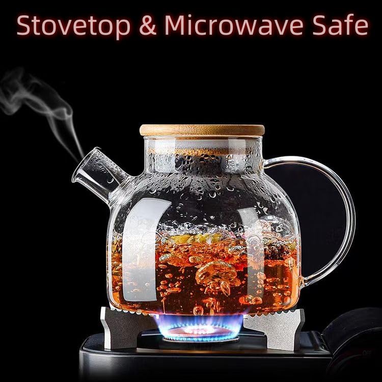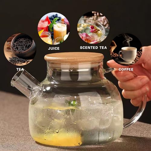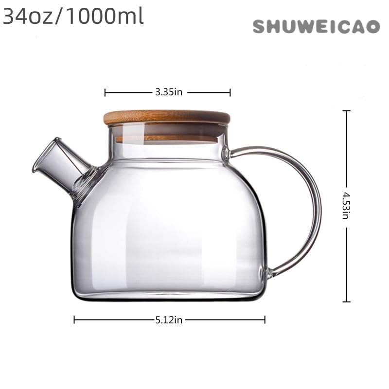 SHUWEICAO - براد شاي من زجاج البوروسيليكات المقاوم للحرارة بغطاء من البامبو وفوهة فلتر قابلة للإزالة من شويكاو، آمن للاستخدام في الميكروويف لأوراق الشجر السائبة والشاي المزهر وشاي الفاكهة، سعة 1.000 لتر