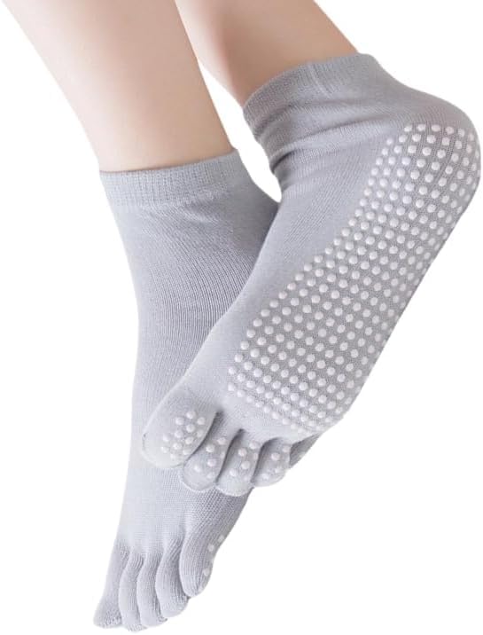 SHOWDAY - شراب يوجا قطن غير قابل للانزلاق مع بطانة لأصابع القدم وأشرطة متقاطعة مضادة للانزلاق لتمارين اليوجا والبيلاتس والرقص والمستشفيات للنساء والرجال من شوداي، شرابات قصيرة قابلة للتنفس