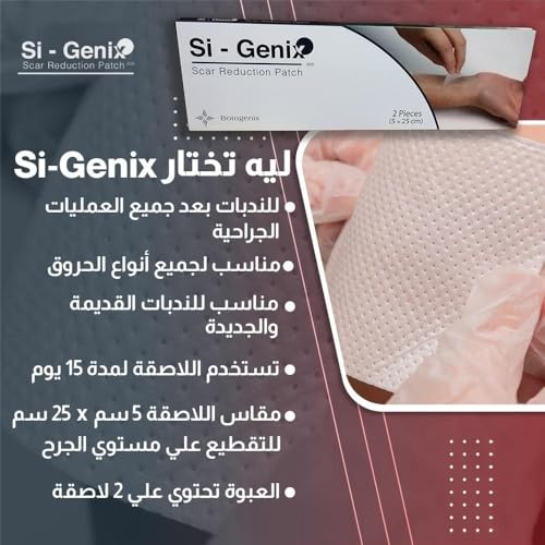 - الأبعاد: يبلغ مقاس كل رقعة 5 سم × 25 سم، مع قطعتين متضمنتين في كل عبوة لعلاج الندبات بشكل مريح.