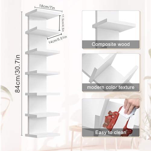 Sibosen - وحدة ارفف عمودية معلقة من 7 طبقات بلمسة نهائية رقيقة ناعمة لديكور الحائط، منظم ديكور منزلي، رف متعدد الاستخدامات للتخزين لغرف النوم والحمام