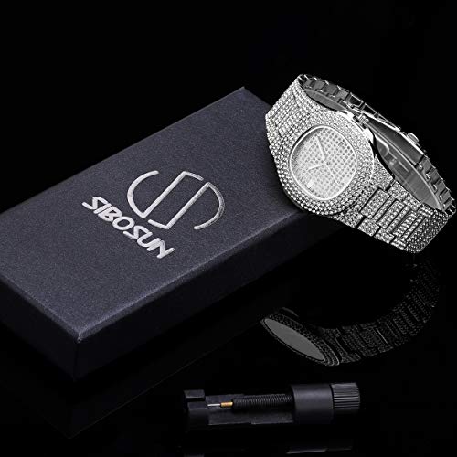 SIBOSUN - ساعة يد كوارتز للنساء من الفولاذ المقاوم للصدأ بلون ذهبي وسوار لامع مزين بالكريستال من سيبوسن