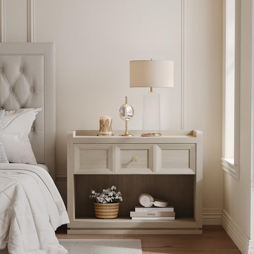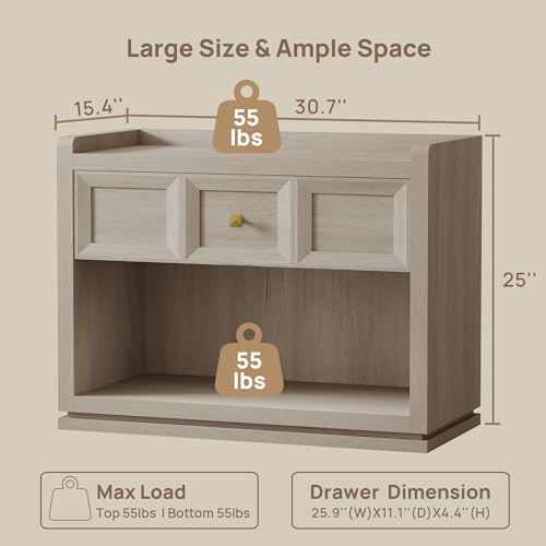 - 【متوفر بمقاسين كبيرين】 نقدم خيارين رائعين للمقاس - عرض 26 انش و30 انش. بغض النظر عما إذا كان لديك سرير بحجم كينج أو كوين، فإن هذه المنضدة الكبيرة هي الرفيق المثالي. واسعة بما يكفي لحمل جميع ضرورياتك الليلية دون شغل مساحة كبيرة!