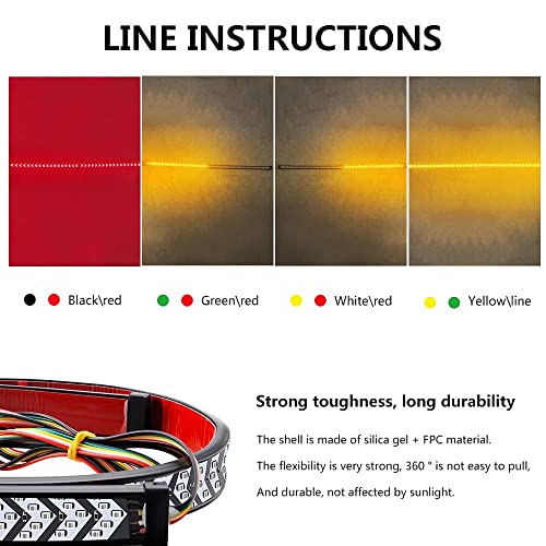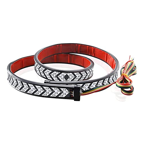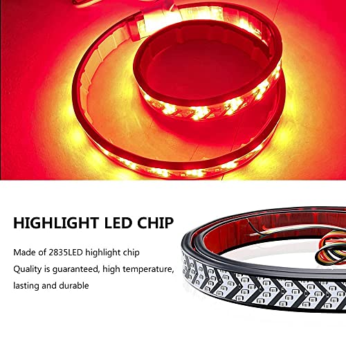 • ✔️فائق السطوع - يتكون شريط الضوء الخلفي مزدوج السهم 1.5 م من 540 قطعة / 2835 خرز مصباح LED عالي الجودة SMD. 270SMD أحمر و270SMD كهرماني. توفر حبات المصباح فائقة السطوع رؤية واضحة للسائق، مما يذكر المركبات والمشاة في الخلف للحفاظ على مسافة معينة لمنع الحوادث.