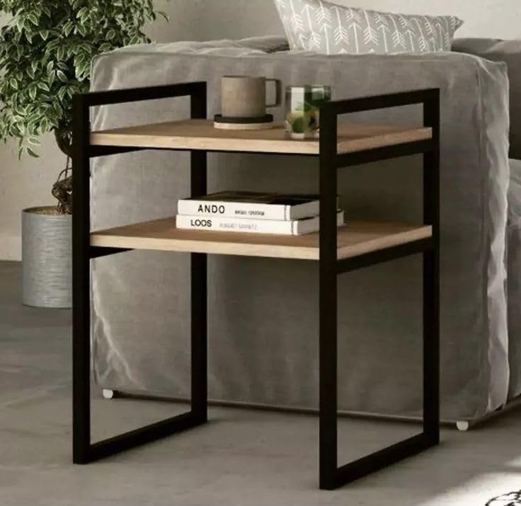 - التصميم العصري: مكتبة جانبية بهيكل من الاستيل الأسود مع سطحين من خشب MDF بلون بني محمر، تجمع بين الأناقة والمتانة لتناسب مختلف الديكورات
