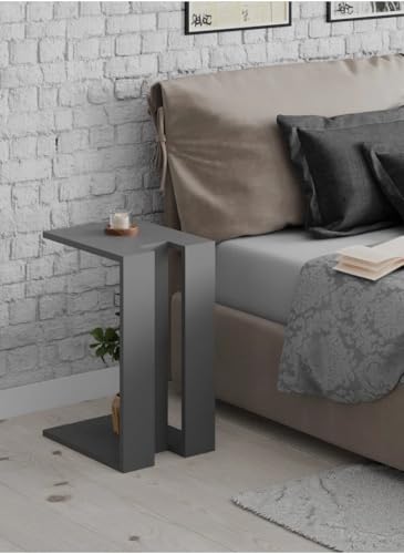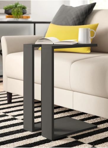 Generic - طاولة جانبية بجانب السرير مع طاولة جانبية عصرية على شكل حرف C، طاولة جانبية مدمجة تنزلق تحت الاريكة او السرير - خشب - لمسة نهائية ناعمة - اسود - 57 × 40 × 30 - قطعة واحدة
