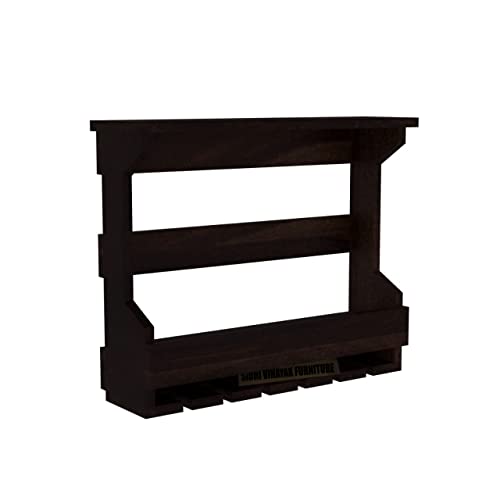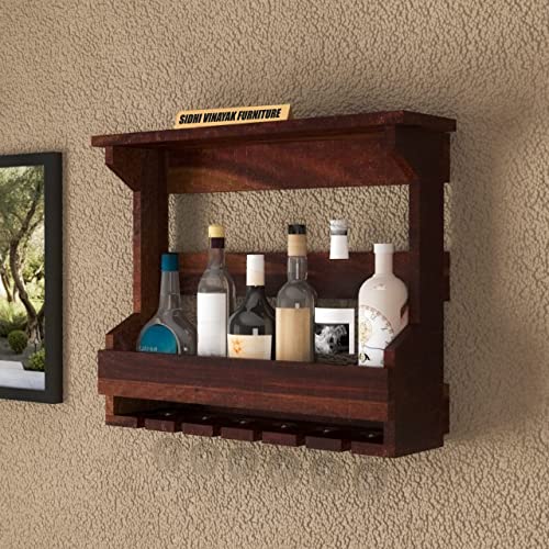 SIDHI VINAYAK FURNITURE - رف مشروبات للتثبيت على الحائط من خشب الشيشام الصلب من سيدي فيناياك فيرنيتشر، رف خشب للتثبيت على الحائط مع حامل زجاج، رف زجاج خشب لتخزين المشروبات وخزائن المشروبات بلمسة نهائية من خشب الجوز