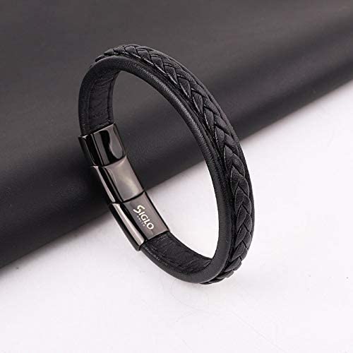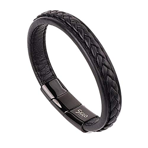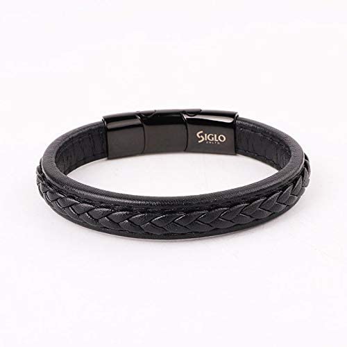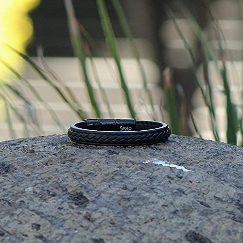 SIGLO - سوار رجالي من الجلد والستانلس ستيل سيجلو بقفل مغناطيسي ستانلس