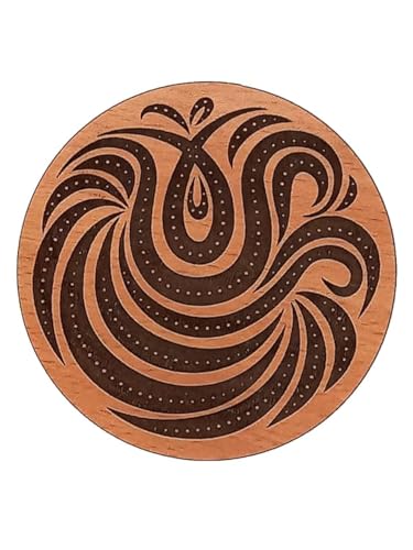 SIGN & DESINE - قاعدة أكواب/ كوستر خشب مستدير محفور بالليزر بشكل غائر بتصميم ورود من ساين اند ديزاين، لون هافان، سمك 0.6 × 9.5 مللى، موديل RCO FL 10M
