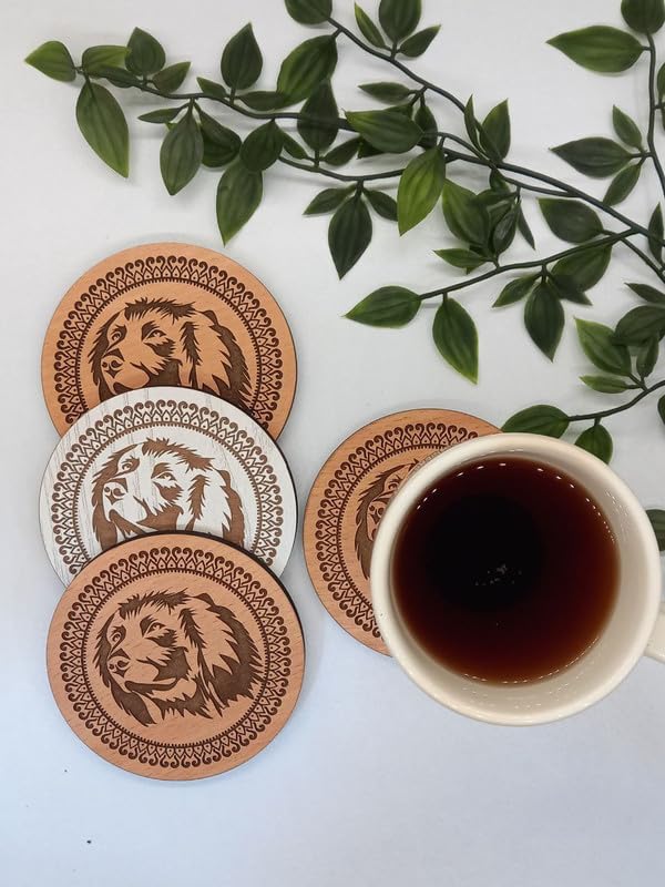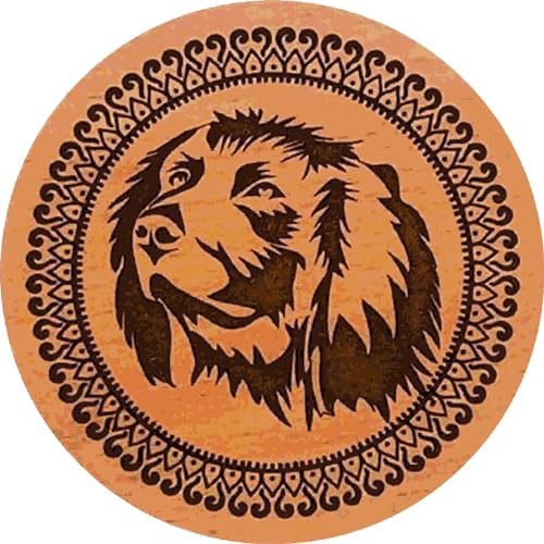 SIGN & DESINE - كوستر مستدير من الخشب مزين بحفر ليزر بتصميم وجه كلب فصيلة كويكرهوندجي ساين اند ديزاين سمك 6 مللي مقاس 9.5×9.5 سم لون هافان