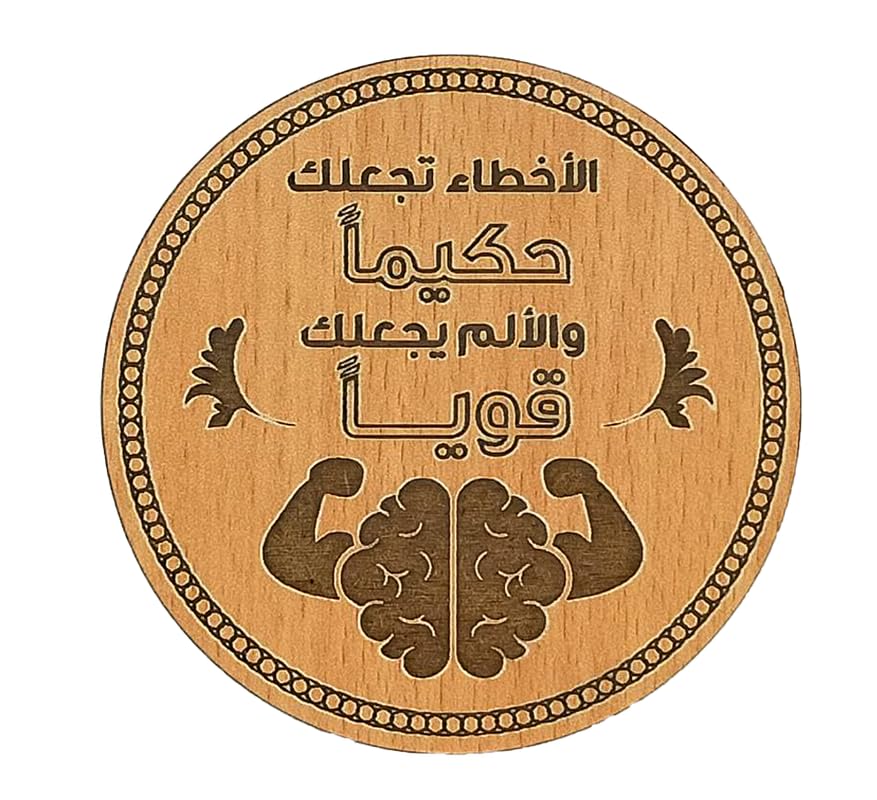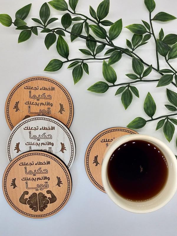 SIGN & DESINE - قاعدة أكواب كوسترمن الخشب بتصميم دائري محفورة بمقولة محفزة عن فوائد الأخطاء و الألم من ساين اند ديزاين، سمك 6 مل، مقاس 9.5 × 9.5 × 0.6 سم - هافان