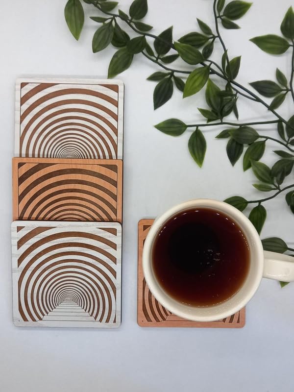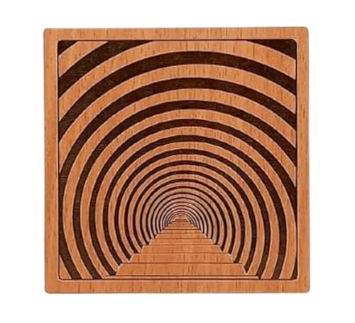 SIGN & DESINE - قاعدة أكواب خشب مربعة ثلاثية الأبعاد 3D من ساين اند ديزاين، كوستر بسمك 6 ملم، 9.5×9.5×0.6 ملم، SCO 3D 01M، هافان، طفل