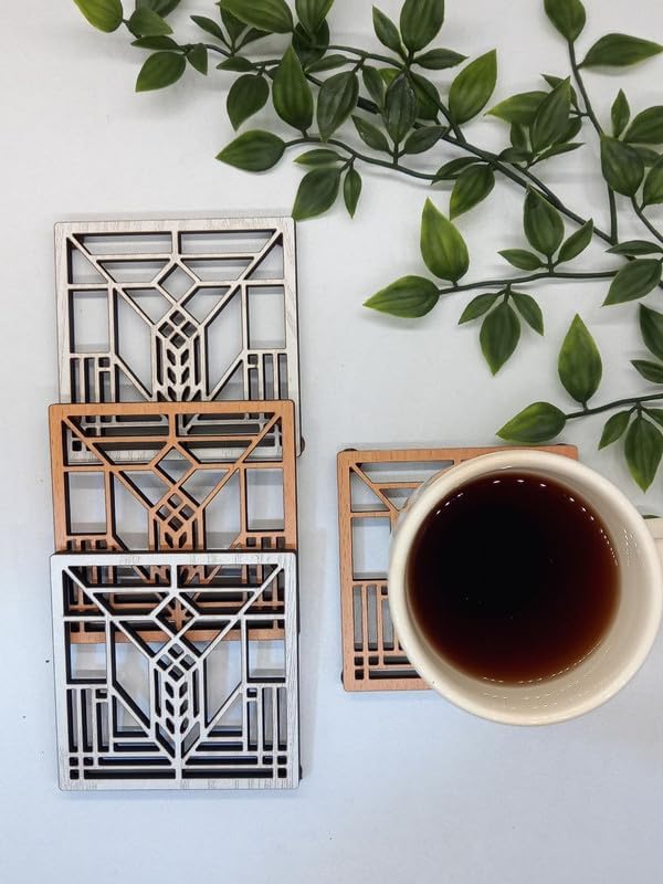 - قاعدة أكواب/ كوستر مربعة مقاس 9.5 سم، تفريغ ليزر