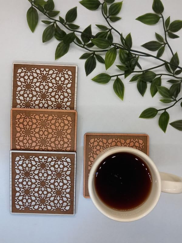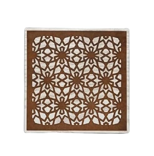 SIGN & DESINE - قاعدة أكواب/كوستر خشب مربعة سُمك 6 ملم وبتصميمات ورود فنية حفر ليزر غائر من ساين اند ديزاين، 9.5 × 9.5 × 0.6 سم - لون بيج SCO FL 06L