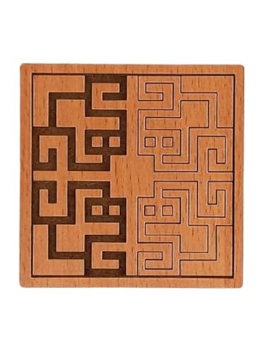 SIGN & DESINE - قاعدة أكواب خشبية مربعة بتصميم هندسي فنى وحفر ليزر غائر بسمك 6 ملم من ساين آند ديزاين، لون هافان، مقاس 9.5× 9.5× 0.6 سم، موديل SCO GE 08M