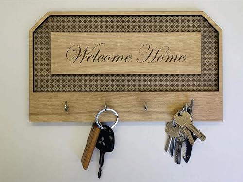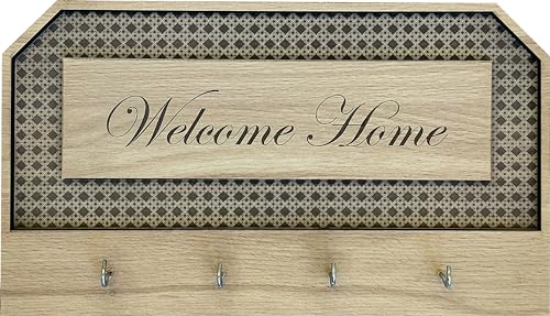 SIGN & DESIGN - حامل مفاتيح خشبي لتزيين الحائط من ساين اند ديزاين - علاقة جدارية مع 4 خطافات - لديكور غرفة المعيشة وغرفة النوم والمدخل - مقاس 28.5 لتر و21.5 سم الحد الأقصى للوزن الموصى به: 290.0 غرامات