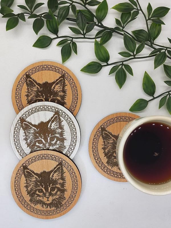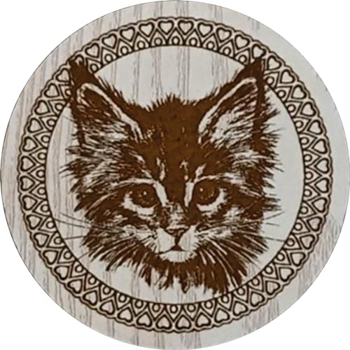 SIGN & DESINE - قاعدة اكواب خشب مستديرة، محفورة وجه كلب فصيلة كيتين. سمك 6 مللى 9.5 × 9.5 × 0.6 سم - هافان