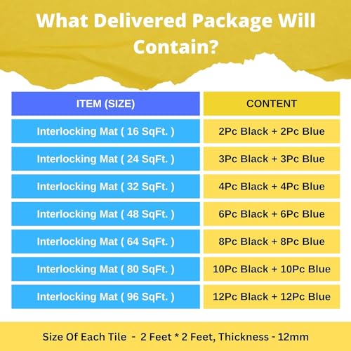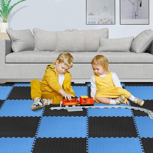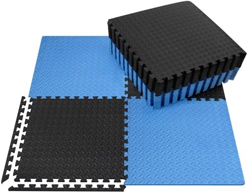 SIGNATRON - سجادة أرضية متداخلة من إسفنج ايفا مع أرضية واقية لمعدات الجيم بلون أسود وأزرق مقاس 12 ملم من سيناترون