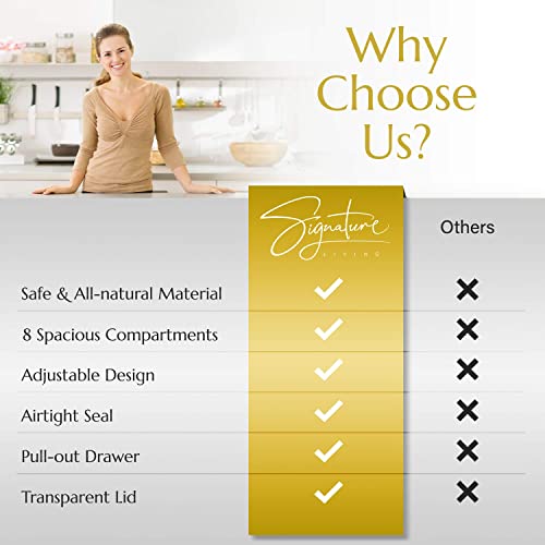 Signature Living - صندوق شاي خشبي من البامبو لتنظيم وتخزين الشاي مع درج، صندوق منظم شاي كبير لأكياس الشاي والشاي السائب - بامبو طبيعي متين من سيجنتشر ليفينج (8 أقسام)
