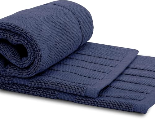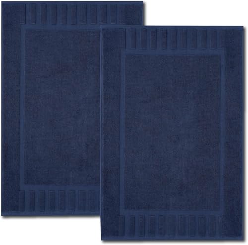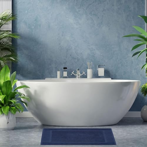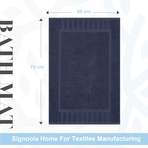Signoola - سجادة حمام من سيجنولا مصنوعة من القطن المصري، لون أزرق كحلي، مقاس 50 × 70 سم، قطعة واحدة، مضادة للانزلاق وسريعة الجفاف مع قابلية للعكس