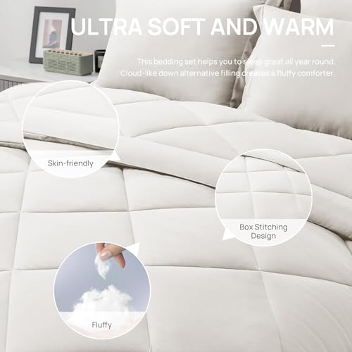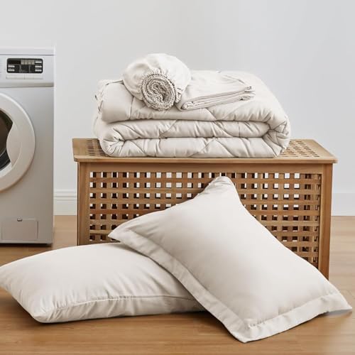 Signoola - لحاف ثقيل من المايكروفايبر من سيجنولا، وزن 3.5 كجم، طقم من 6 قطع (بطانية لحاف واحدة، 2 كيس مخدة، ملاءة بمطاط تثبيت واحدة و2 مخدة)، (180 سم × 240 سم)، بطانية سرير مزدوجة للشتاء بلون بيج