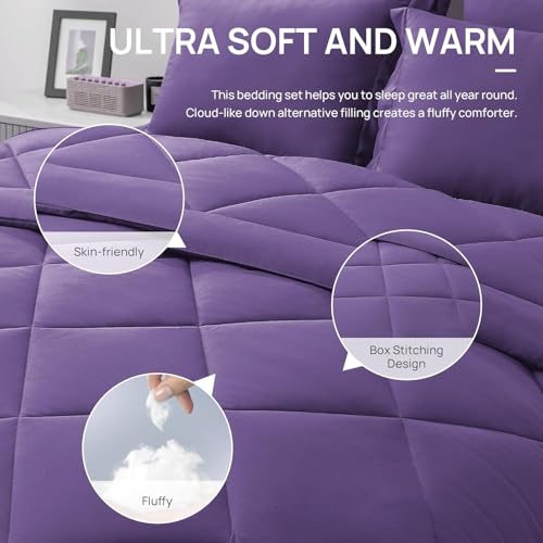 Signoola - لحاف ثقيل من المايكروفايبر الماسي من سيجنولا، 10 باوند، طقم لحاف (240 سم × 250 سم)، بطانية سرير مزدوجة فائقة النعومة للشتاء بلون ارجواني