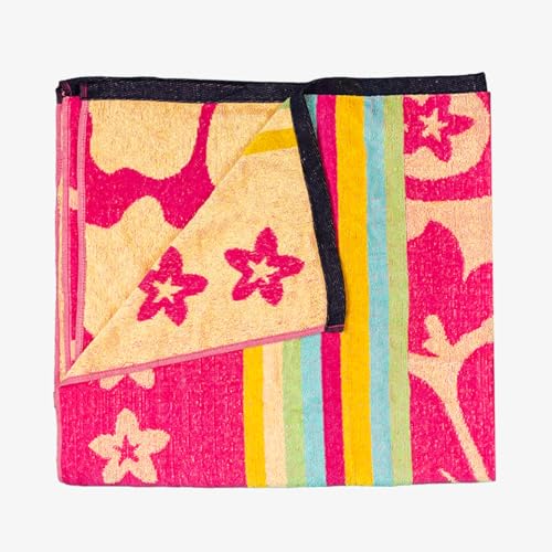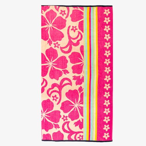 Signoola - منشفة شاطئ من القطن الفاخر من سيجنولا تجمع بين الراحة الفاخرة والاداء العملي مقاس 90 × 170 سم - اصدار الزهور الوردية
