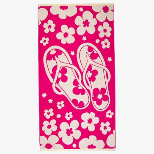 Signoola - منشفة الشاطئ القطنية الفاخرة من سيجنولا تجمع بين الراحة الفاخرة والاداء العملي مقاس 90 × 170 سم - اصدار شبشب بينك وابيض