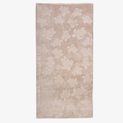 Signoola - منشفة شاطئ من القطن الفاخر من سيجنولا تجمع بين الراحة الفاخرة والاداء العملي مقاس 90 × 170 سم - لون بيج سادة اصدار السلاحف