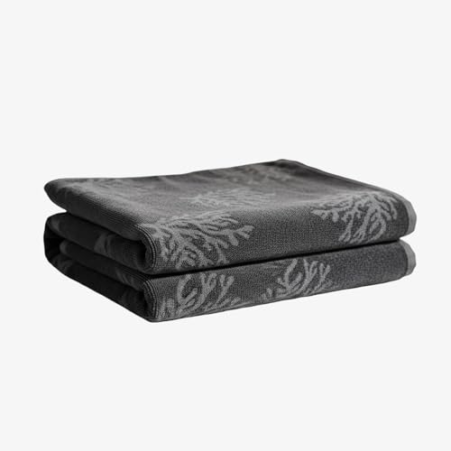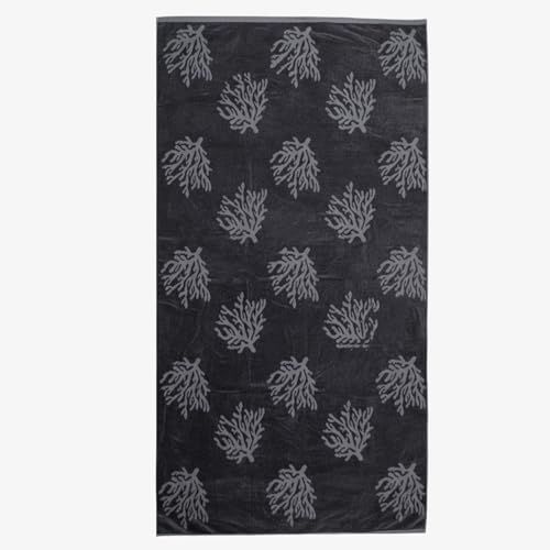 Signoola - منشفة شاطئ من القطن الفاخر من سيجنولا تجمع بين الراحة الفاخرة والاداء العملي مقاس 90 × 170 سم - اصدار اوراق الشجر السوداء السادة