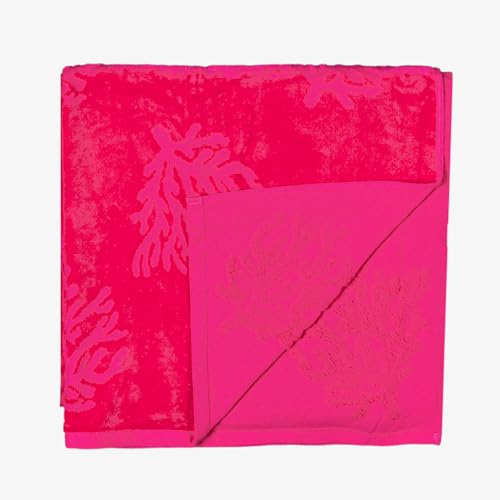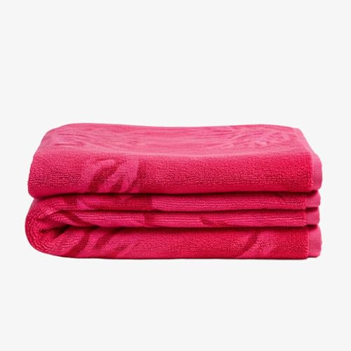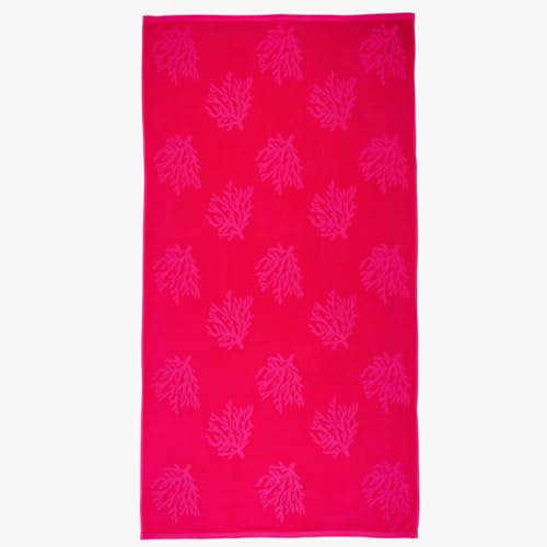 Signoola - منشفة شاطئ من القطن الفاخر من سيجنولا تجمع بين الراحة الفاخرة والاداء العملي مقاس 90 × 170 سم - اصدار اوراق الشجر بلون بينك سادة
