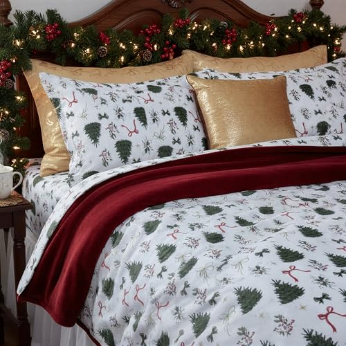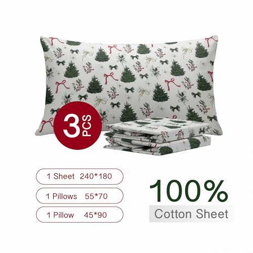 Signoola - طقم شراشف مسطحة بتصميم شجرة الكريسماس مقاس كوين من سيجنولا - طقم شراشف بنمط عطلة الكريسماس مكون من 3 قطع - خالي من التجاعيد - مريح ومبرد للشتاء - ملاءات العطلات للنساء والرجال والاطفال والمراهقين 240