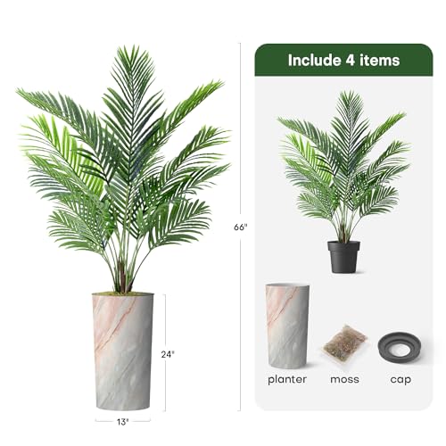 SIGNWIN - شجرة صناعية بتاثير جرانيت عصري، شجرة نخيل اريكا الاستوائية الحريرية لتزيين المنزل الداخلي والخارجي - الطول الكلي 66 بوصة (وعاء نباتات مع شجرة)