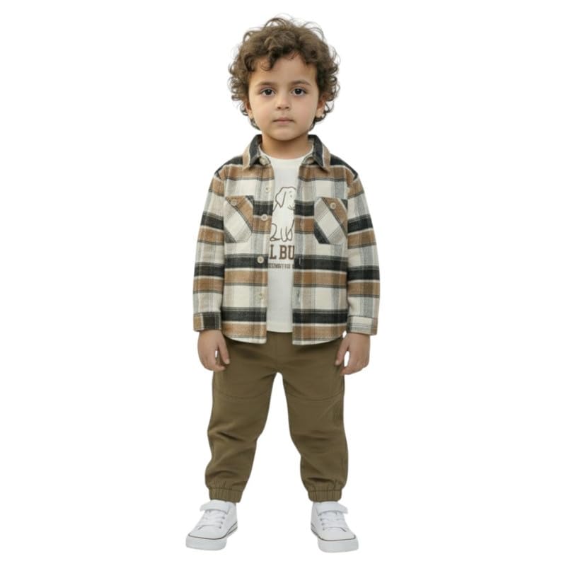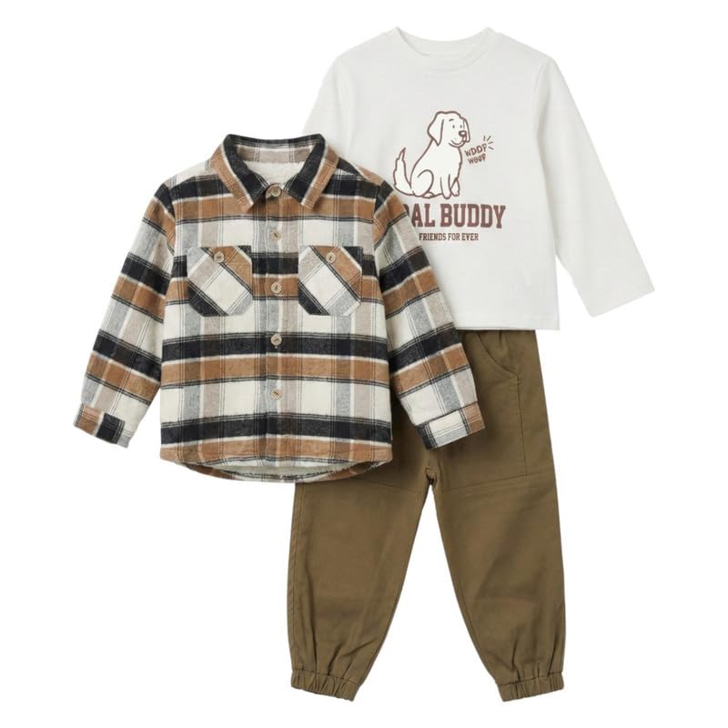 SIKA - سيكا قميص باكمام طويلة وبنطلون وتيشرت باكمام طويلة للاولاد مطبوع عليه كلب وبنطلون وتيشيرت باكمام طويلة (عبوة من قطعة واحدة)