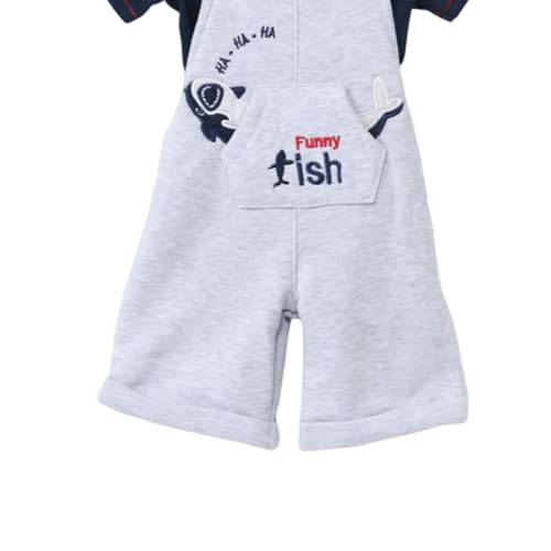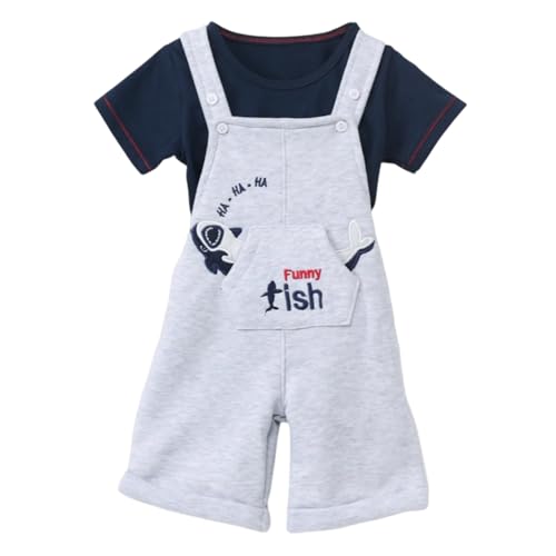 SIKA - طقم سالوبيت بكباسين وتيشرت مطرز بتصميم سمكة مضحكة للأولاد من سيكا، مكون من 2 قطعة