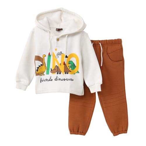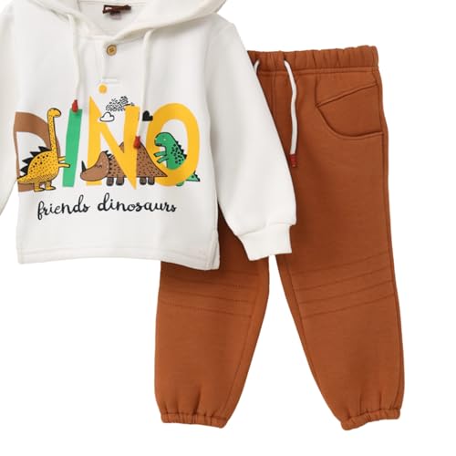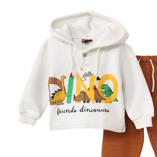 SIKA - طقم من سويت شيرت بغطاء رأس وأكمام طويلة وبنطلون بطباعة ديناصور للأولاد من سيكا، مكون من قطعتين (عبوة من قطعة واحدة)