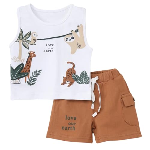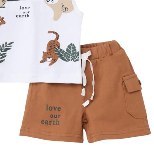 SIKA - طقم تيشرت بدون أكمام مطبوع بعبارة "Love Our Earth" وشورت للأولاد من سيكا (طقم من قطعتين)